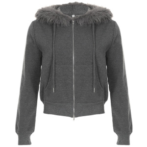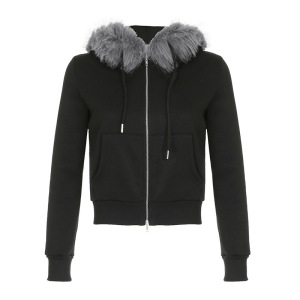 アメリカのレトロでゆったりした純色のベルベット保温ダブルヘッドジッパーカーディガン秋冬フード