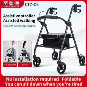 高齢者ホイール歩行器障害者歩行補助器アルミ合金リハビリ折り畳みプーリー座り歩行器