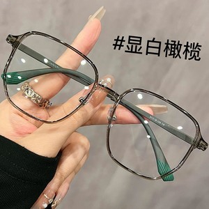 鏡枠超軽量茶色大枠痩せ眼鏡チタンフレーム女性近視は度数素顔神器多角形鏡フレームを配合できる
