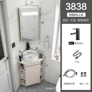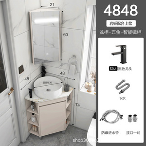 48cm三角岩板+丸洗面器+キャビネット+金具+スマートミラーキャビネット