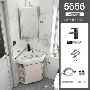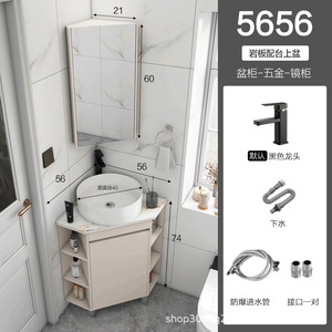 56cm三角岩板+丸洗面器+キャビネット+金具+普通ミラーキャビネット