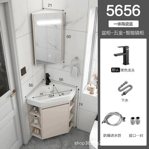 56cm三角岩板+丸洗面器+キャビネット+金具+スマートミラーキャビネット