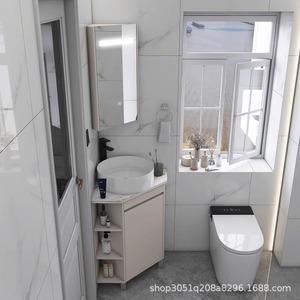 床置き型三角浴室キャビネットサイド収納洗面器キャビネットセット小戸型トイレコーナー洗面器キャビネット
