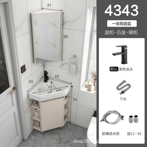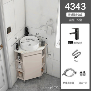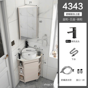 43cm三角岩板+丸洗面器+キャビネット+金具+普通ミラーキャビネット