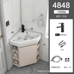 48cm三角岩板+丸洗面器+キャビネット+金具+普通ミラーキャビネット
