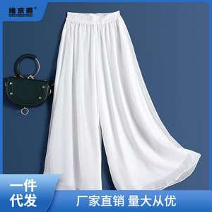 黒のワイドパンツ春秋夏の新型二重ズボン二重ダンス服古風白糸ズボンのペンダント感雪九毛
