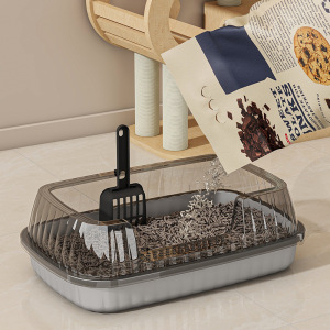 猫砂盆トランペット幼猫低足猫砂盆超大型防外スプラッシュ側開放猫籠半閉鎖猫トイレ