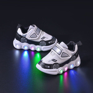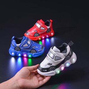 外国貿易の感応灯の靴の男の子の春夏の新型の漫画の小さい自動車の男女の子供の運動靴のマジックは明かりの靴の潮を貼ります