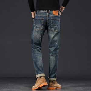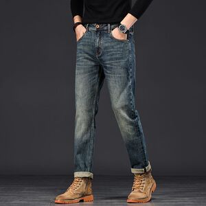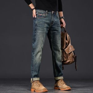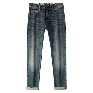 潮牌のハイエンドの幅が狭い赤の耳の丹寧の男性のジーパン2025春の新型の修身のまっすぐな筒のデニムのズボン