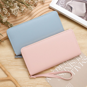 財布の女性の長い色の純色の財布の新型のファッション的な携帯電話の包みの大容量の小銭のファスナーのハンドバッグの卸売り