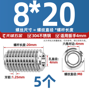 中空締め付け304ステンレス機米ねじ六角穴付きねじ弁芯中空ボルトM6-M16mm