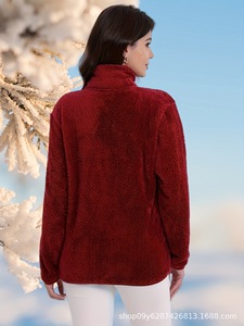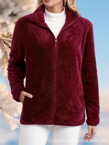 欧美秋冬女士时尚休闲高级感超好看百搭无帽毛绒拉链夹克外套开衫