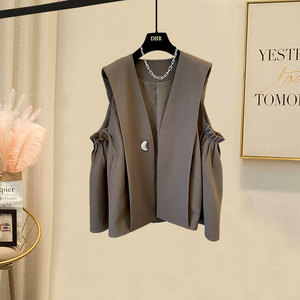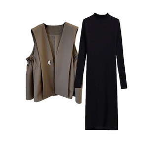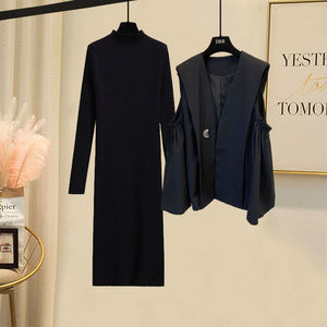 大きいサイズの婦人服の秋のスーツの女性の2025新型のゆるい肩のベストのコートのニットのワンピースの2つのセット
