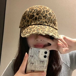 ヒョウ柄ダメージ加工ベースボールキャップ キャメル