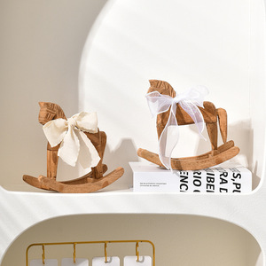 現代のシンプルなリボンは馬を振って木の子供のおもちゃの馬のアイデアの人形の家庭の客間のデスクトップの装飾を並べます。