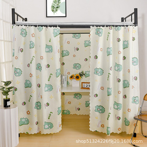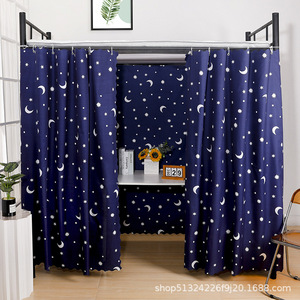 ベッドのカーテンの下に大学生寮のシングルベッドのカーテンが敷かれている