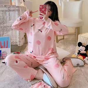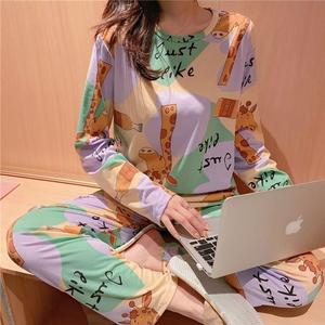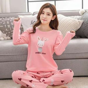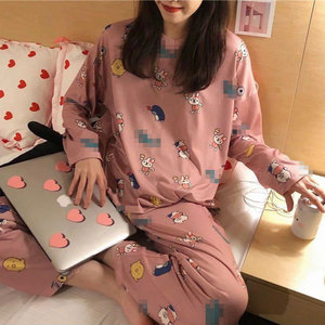 薄い長袖のパジャマの女性の春秋の2セットの日本のかわいいウサギの女性のカジュアルな年齢の家庭服のスーツ