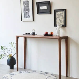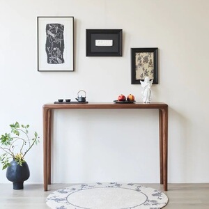 北欧の木の玄関テーブルは現代的にシンプルで、壁のそばにテーブルを提供します。