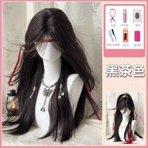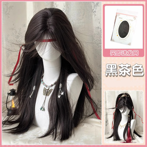 古風漢服かつら女長髪日常中分黒長直少年高馬尾造形シミュレーション髪全頭セット式