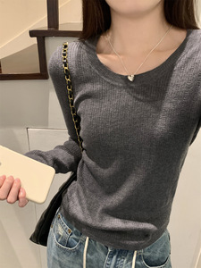 杏色の小さい背の中に長袖のプルオーバーのセーターのニットの女性の秋冬の修身はやせているように見えます。