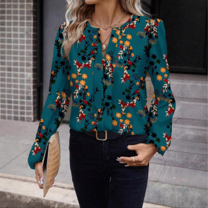2025春夏新型欧米クロスボーダーアマゾン速売通砕花プリント気質優雅長袖シャツ上着