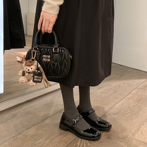 【グレープママと同じスタイル】漫画ガール~P家スクエアトゥチャンキーヒールワンストラップメリージェーンシューズレディースレザーシューズ