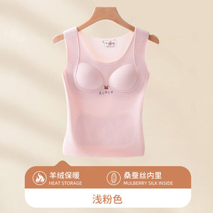 安菲雅秋冬少女発育期に胸パッド付き保温ベスト女子学生が底をつく暖かいベルベットのストラップ中高生
