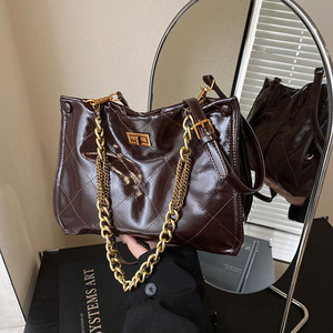 复古油蜡皮链条托特包女包秋冬新款高级感简约通勤大容量单肩包
