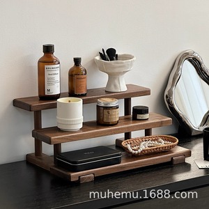 ウォールナットデスクトップ収納ラック多層ストレージ無料設置スキンケア製品マグ香水ディスプレイラック