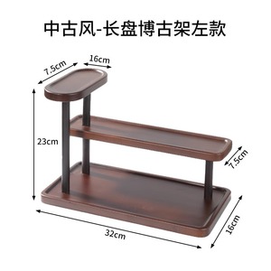 ブラックウォールナット長皿収納ラック 左スタイル【設置不要・そのまま使用可能】