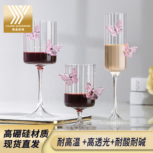 爽やかな風合いの高脚グラス、蝶の形をしたワイングラス、シャンパングラス、美しいカクテルグラス、結婚式の記念品、誕生日プレゼント