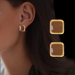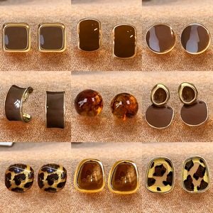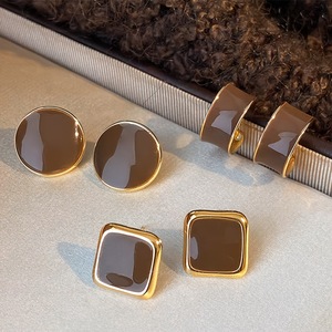 越境卸売イヤリング メイラード釉薬コーヒー色イヤリング 2025年新作 高級感あふれる万能イヤリング 幾何学模様