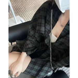 YC89 ライトブルーチェック柄#本物のコットンシャツ