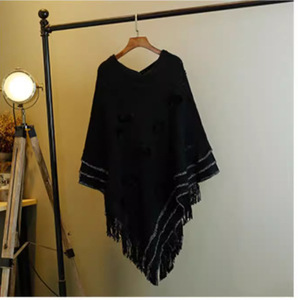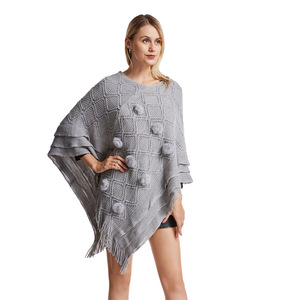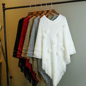フリンジのマントのコートの女性の肩掛け式のコウモリの型のメリヤスの秋冬の中で長いタイプの頭をかぶせて純色のセーターをかぶせます。
