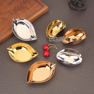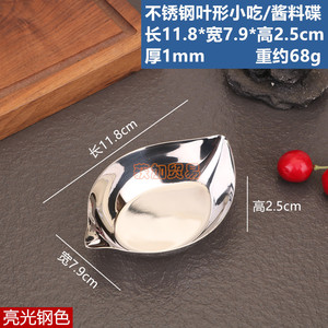 ステンレス鋼の葉の形をしたスナックソース皿光沢のあるスチールカラー
