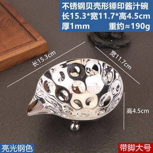 ステンレス製の貝殻型ハンマー型ソースボウル、足付き、小型、光沢のあるスチールカラー