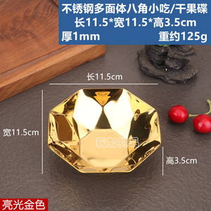 ステンレス製多面体八角スナックドライフルーツプレートブライトゴールド