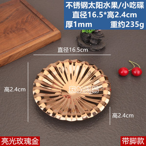 ステンレススチール製ラウンドフルーツスナックプレート光沢のあるローズゴールド