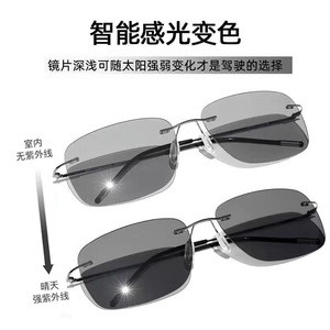 新しい超軽量フレームレス変色サングラス男性用運転ナイトビジョン偏光サングラス抗 UV