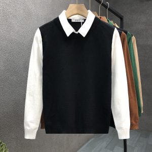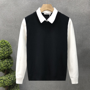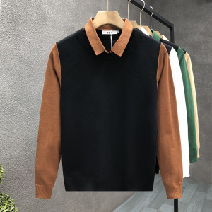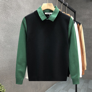 青少年の偽の2つのステッチのプルオーバーのニットの男性の冬の衝突の色のシャツの襟のセーターの修身の上着の潮