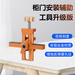 キャビネットドア取り付け補助ツール 二合一 リバウンド式 アルミ合金製 多機能 穴あけ位置決めツール