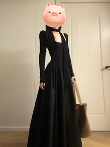 赫本風フランス式の黒いワンピースの子供は秋冬2025の新型のコートの中に底の気質の長いスカートを掛けます。