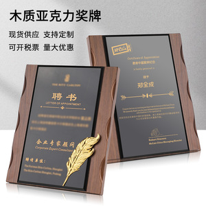 高級栄誉招聘書会員加盟牌木質授権牌胡桃木目メダル黒アクリル石版カスタマイズ