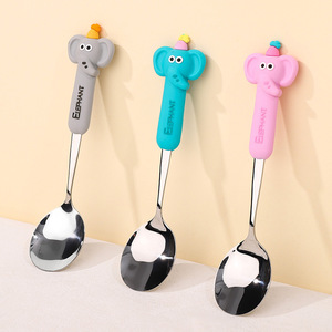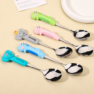 新しい漫画のシリカゲルの子供のスプーンの学生の携帯の食器の304ステンレスのスプーンのスープのスプーンのかわいい小さいスプーン