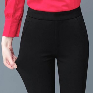 黒のマイクロラッパのカジュアルなズボンの女性2025新型の夏の高腰の修身はやせているラッパのズボンの垂感の中年の女性のズボンを現します。