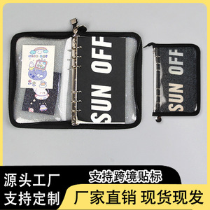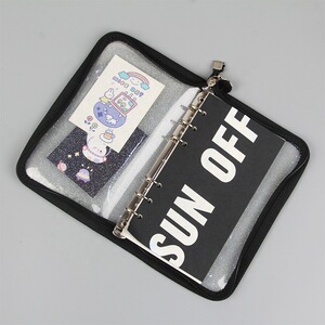 シンプルで透明感のあるキラキラPVC A6リング式ジッパー付き手帳フォトアルバムカードブック小物収納ブック