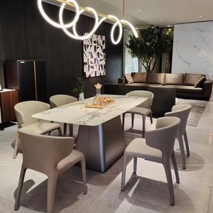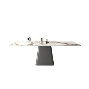 イタリア式の軽い豪華な岩板の食卓は現代的でシンプルな家庭用ステンレスの食卓は別荘の長方形の豪華な石の食卓を明るくします。