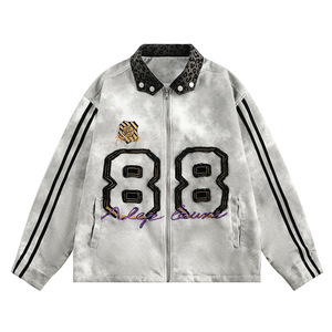 アメリカの街頭のスプレーマシンの車のジャケットの男女の春と秋のゆるいカップルの小さい大衆の潮のブランドのレースのスエードの毛皮の上着