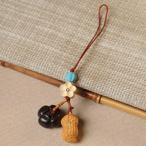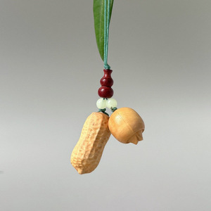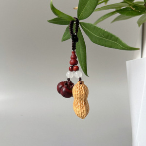 紫檀柿子花生車キーホルダーDIYペンダント、クリエイティブで個性的な装飾品
