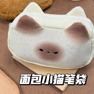 起爆フレンチトースト猫筆袋insかわいい化粧収納バッグ大容量学生鉛筆ケース